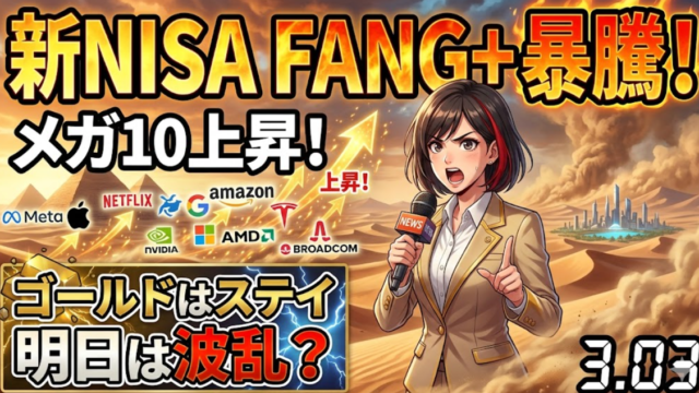 新NISA【iFreeNEXT FANG+】暴騰傾向の値動き!メガ10上昇!ゴールドはステイ明日は波乱になる?3.03