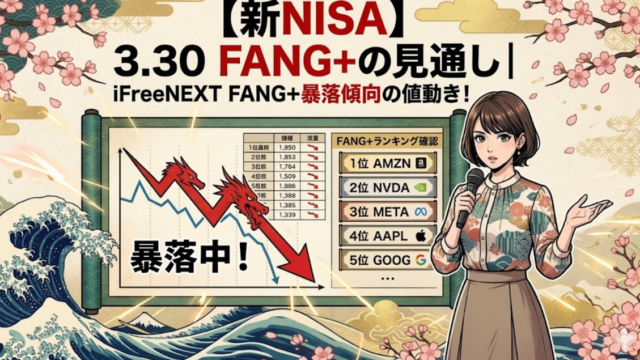 【新NISA】3.30FANG+の見通し|iFreeNEXT FANG+暴落傾向の値動き!ランキングの確認