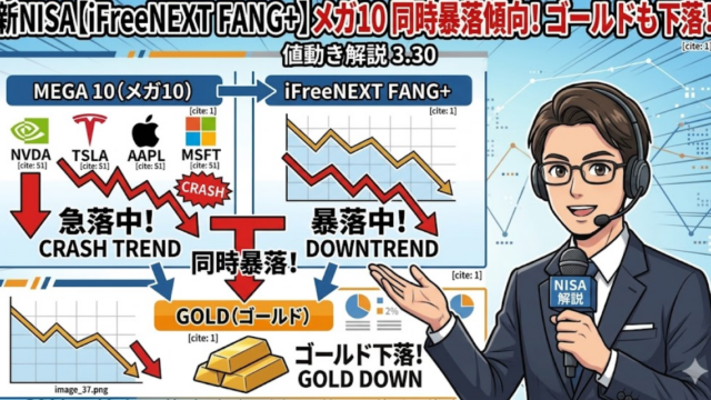 新NISA【iFreeNEXT FANG+】メガ10共に暴落傾向の値動きゴールド上昇|値動き解説3.30