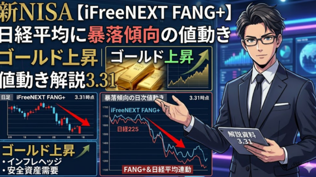 新NISA【iFreeNEXT FANG+】日経平均に暴落傾向の値動きゴールド上昇|値動き解説3.31
