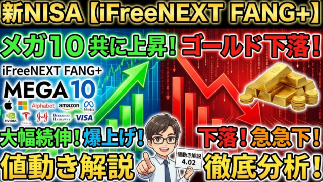 新NISA【iFreeNEXT FANG+】メガ10共に上昇の値動きゴールド下落|値動き解説4.02