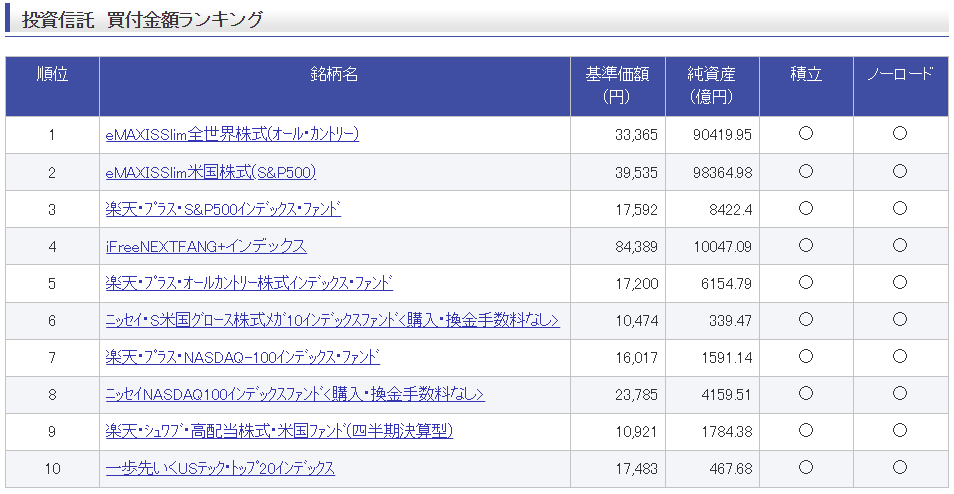 https://www.rakuten-sec.co.jp/web/market/ranking/nisa/fund.htmlより引用