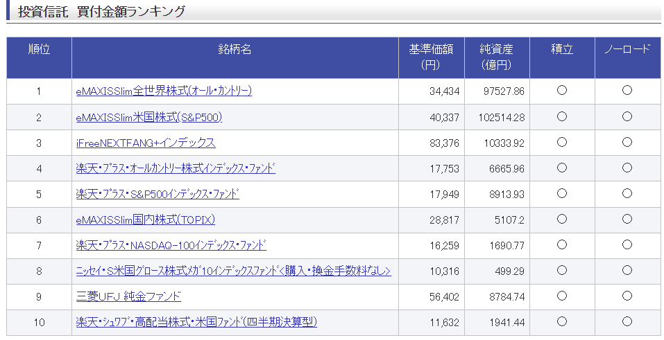 https://www.rakuten-sec.co.jp/web/market/ranking/nisa/fund.htmlより引用