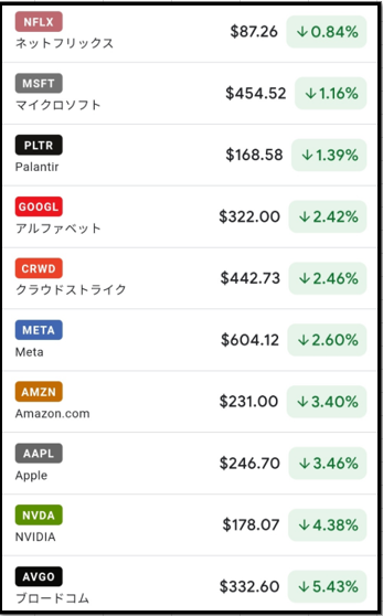 ファング+採用銘柄の高安