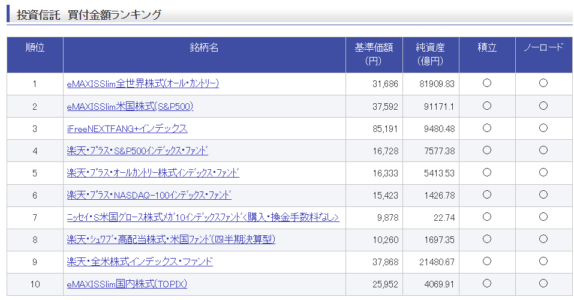 https://www.rakuten-sec.co.jp/web/market/ranking/nisa/fund.htmlより引用