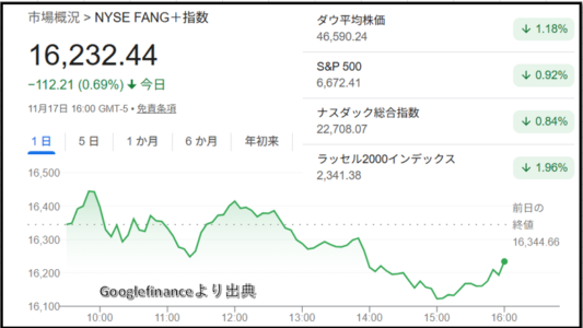 【新NISA】11.18FANG+の見通し|iFreeNEXT FANG+続落!日経平均暴落傾向でエヌビディア決算待ち!?