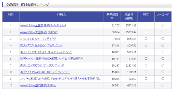 https://www.rakuten-sec.co.jp/web/market/ranking/nisa/fund.htmlより引用