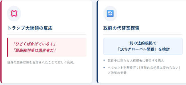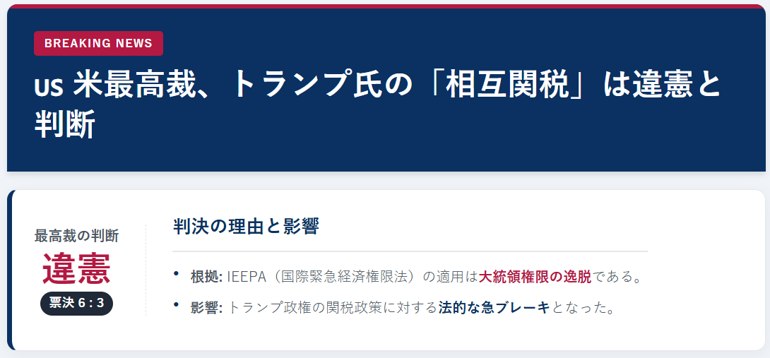 トランプ政権が各国に課した「相互関税」について連邦最高裁判所は20日、違法との判断を下した。これを受けトランプ氏は別の法律に基づき、全世界に対し10%の関税を課すと表明した。 pic.twitter.com/RP42YzKmBt