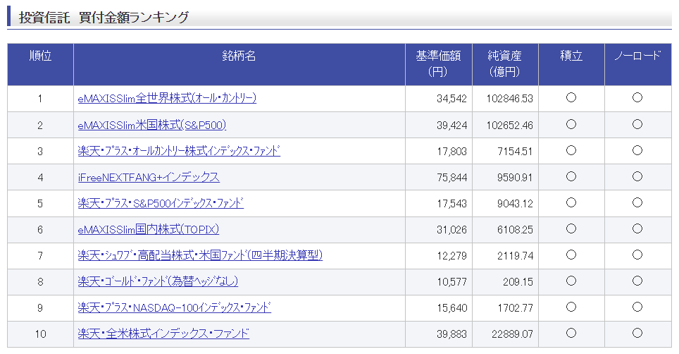 https://www.rakuten-sec.co.jp/web/market/ranking/nisa/fund.htmlより引用