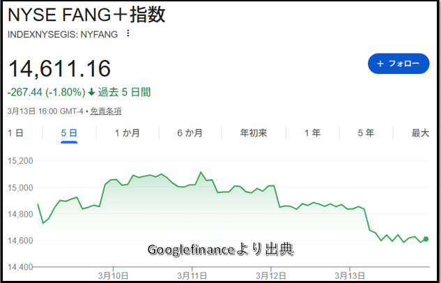 今回はFANG+の先週の値動きの