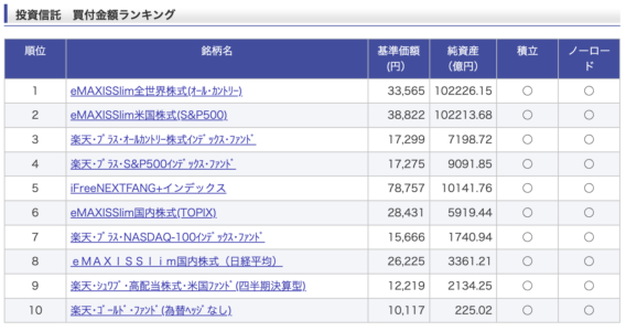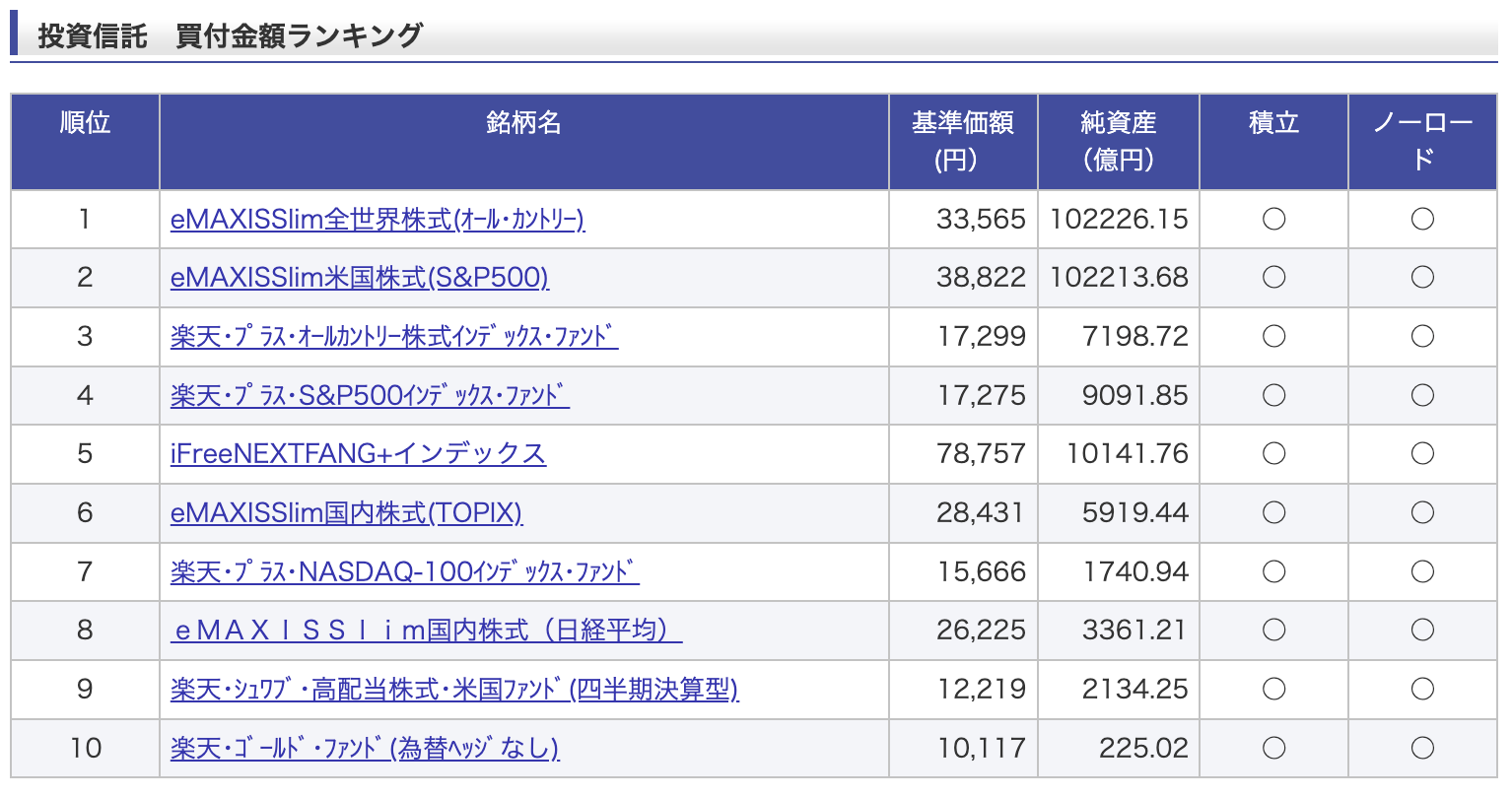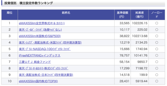 https://www.rakuten-sec.co.jp/web/market/ranking/nisa/fund.htmlより引用