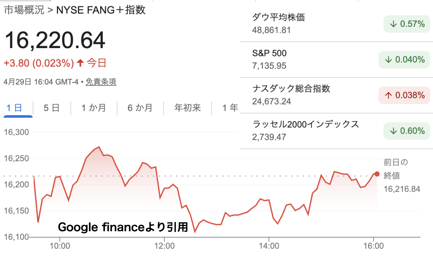 【新NISA】4.30FANG+の見通し|iFreeNEXT FANG+下落!明暗分かれる決算後