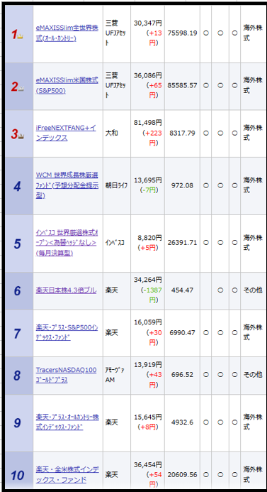 https://www.rakuten-sec.co.jp/web/fund/find/ranking/ranking.html?term=w&target=all&age=50&x=64&y=2&type=500001&freqid=2&tget=1&group=50より引用