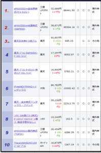 https://www.rakuten-sec.co.jp/web/fund/find/ranking/ranking.html?term=w&target=all&age=50&x=64&y=2&type=500001&freqid=2&tget=1&group=50より引用