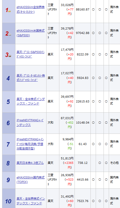 https://www.rakuten-sec.co.jp/web/fund/find/ranking/ranking.html?term=w&target=all&age=50&x=64&y=2&type=500001&freqid=2&tget=1&group=50より引用