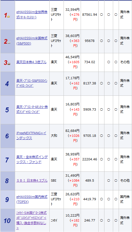 https://www.rakuten-sec.co.jp/web/fund/find/ranking/ranking.html?term=w&target=all&age=50&x=64&y=2&type=500001&freqid=2&tget=1&group=50より引用