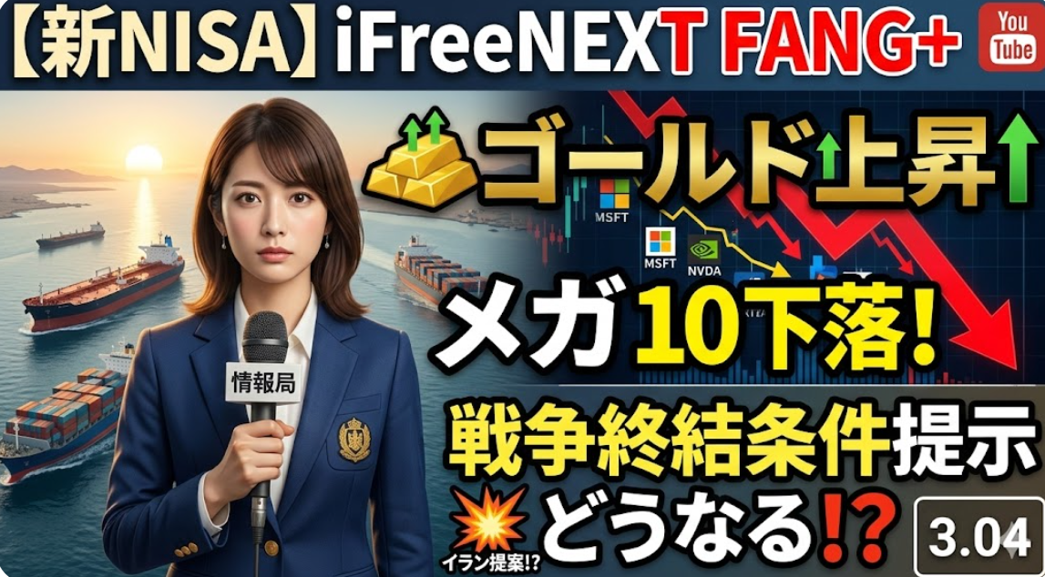 新NISA【iFreeNEXT FANG+】ゴールド上昇!メガ10下落|戦争終結条件提示はどうなる3.04