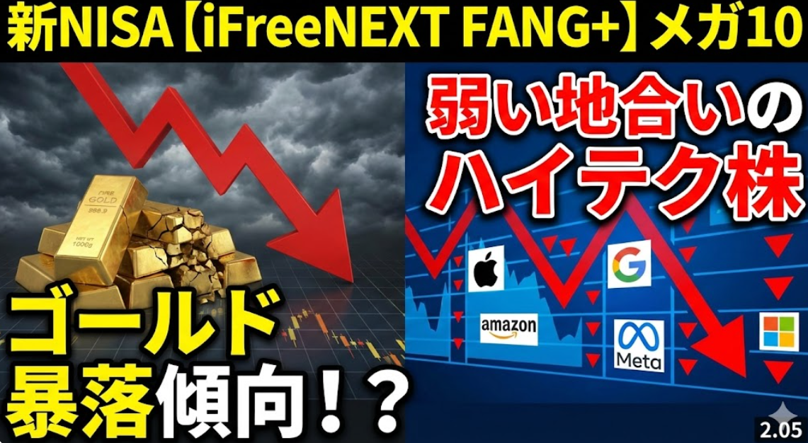 新NISA【iFreeNEXT FANG+】メガ10|ゴールドは暴落傾向に!?弱い地合いのハイテク株2.05