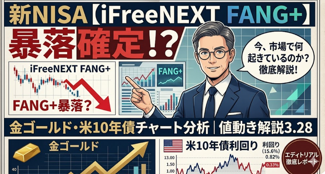 新NISA【iFreeNEXT FANG+】暴落確定!?金ゴールド・米10年債チャート分析|値動き解説3.28