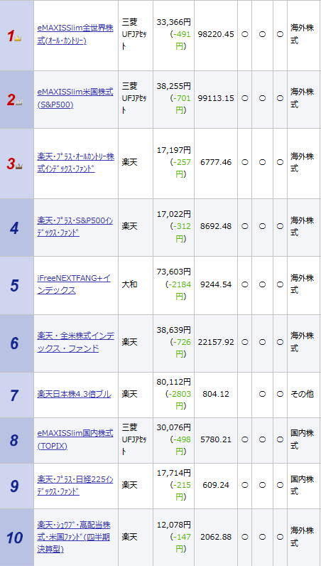 https://www.rakuten-sec.co.jp/web/fund/find/ranking/ranking.html?term=w&target=all&age=50&x=64&y=2&type=500001&freqid=2&tget=1&group=50より引用