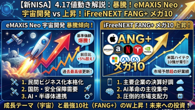 新NISA eMAXIS Neo 宇宙開発暴騰傾向!【iFreeNEXT FANG+】メガ10上昇!|値動き解説4.17